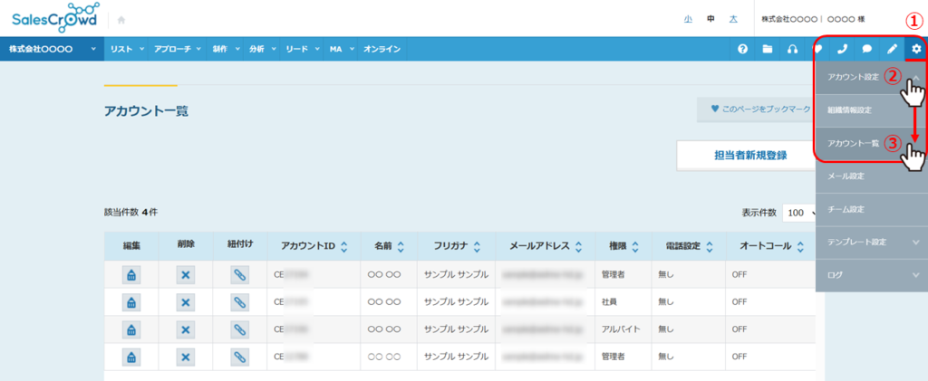 ※SalesCrowdのアカウント権限に関しては、こちらをご参照ください。